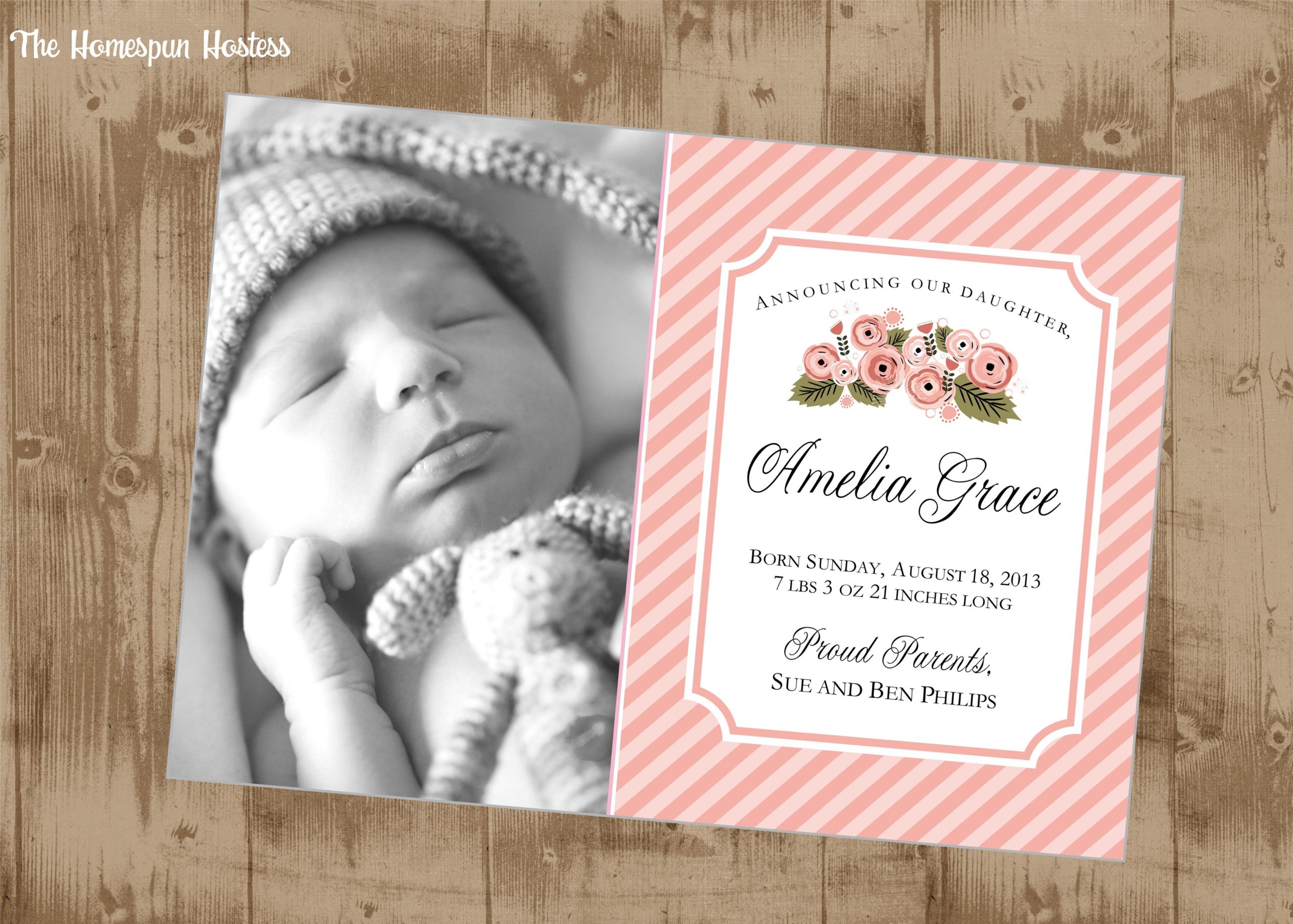 Baby Girl Vintage pink floral printable photo Birth Announcement
