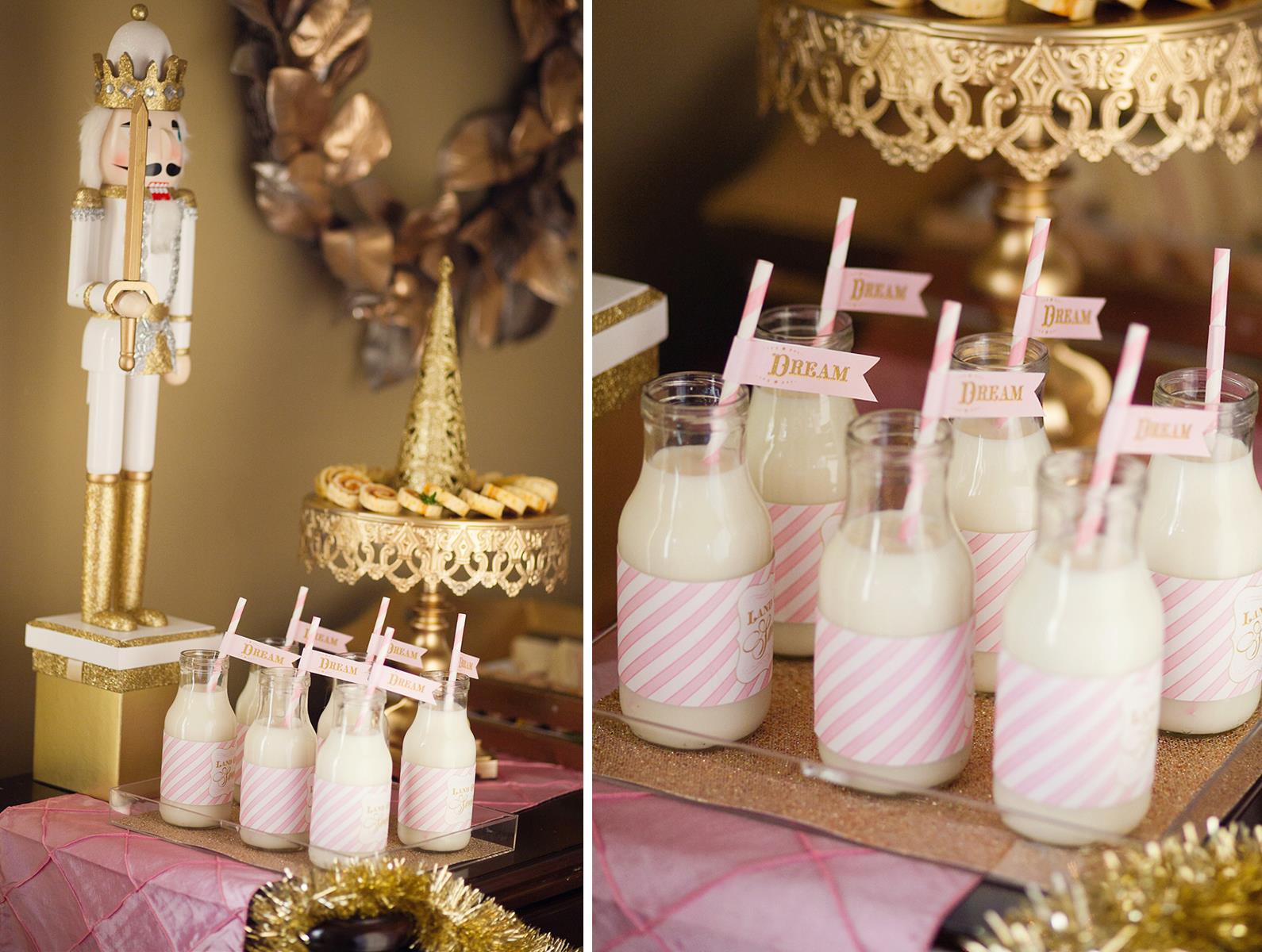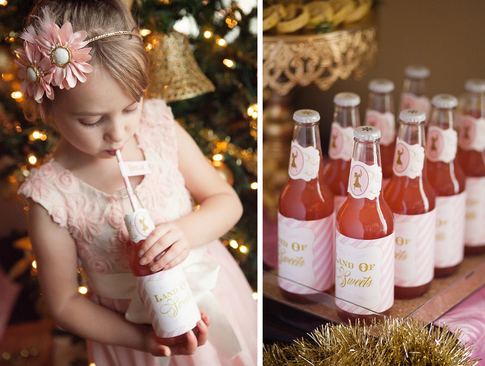 Pink and Gold Nutcracker Party Bottle Wraps + Straw Flags Instant Download