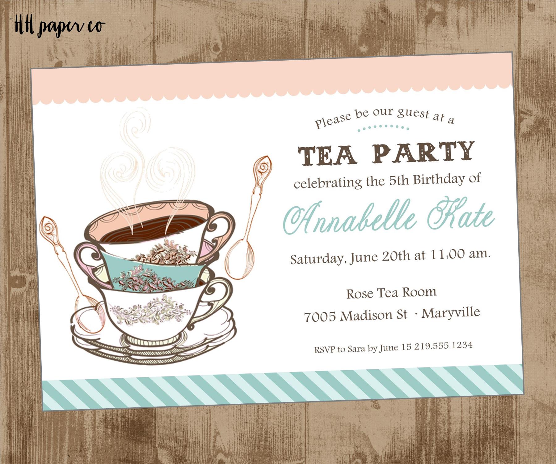 Tea Party Printable Invitation – vintage tea cups – pink and aqua