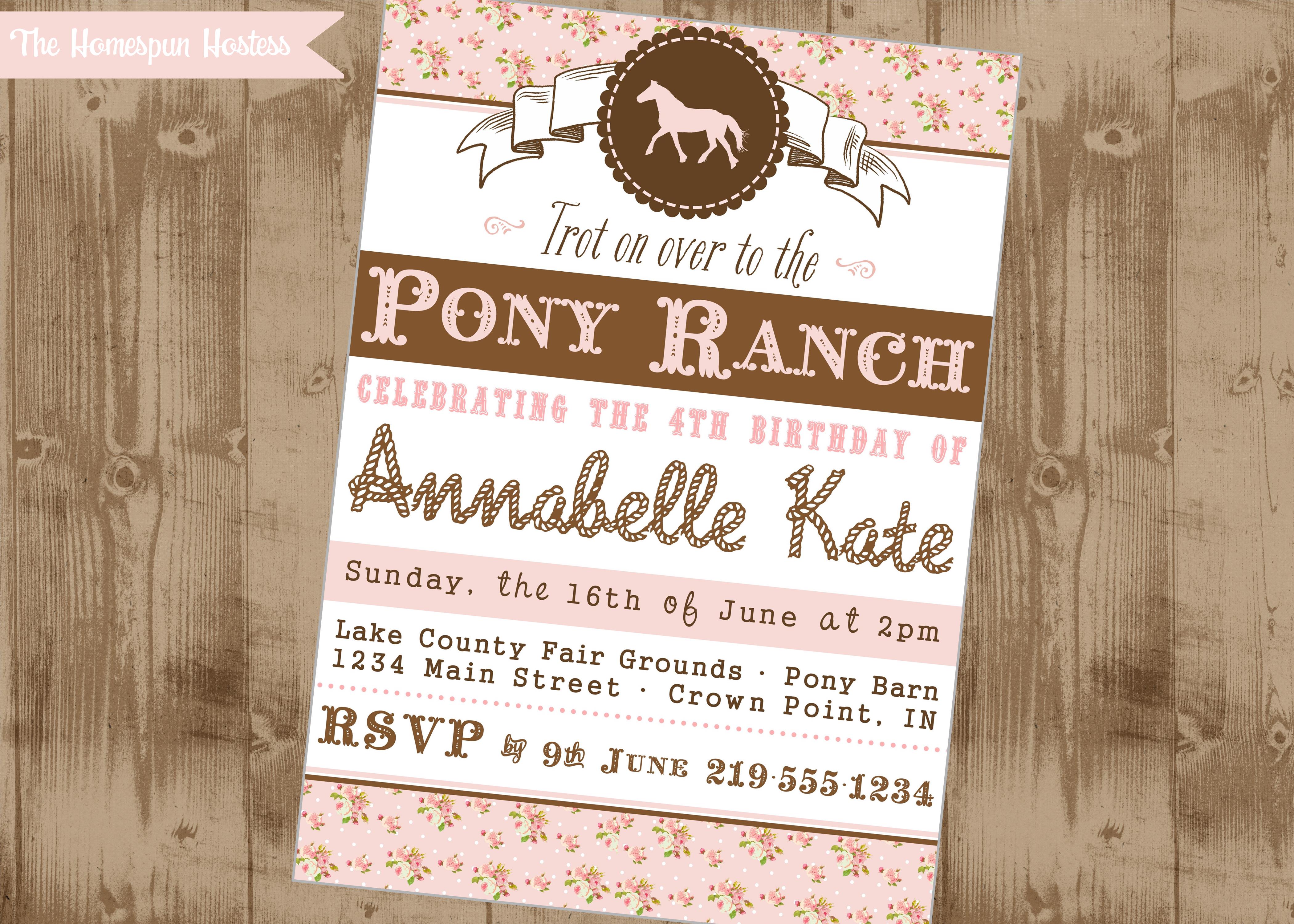 Vintage Pony Party Printable Invite in Pink Floral