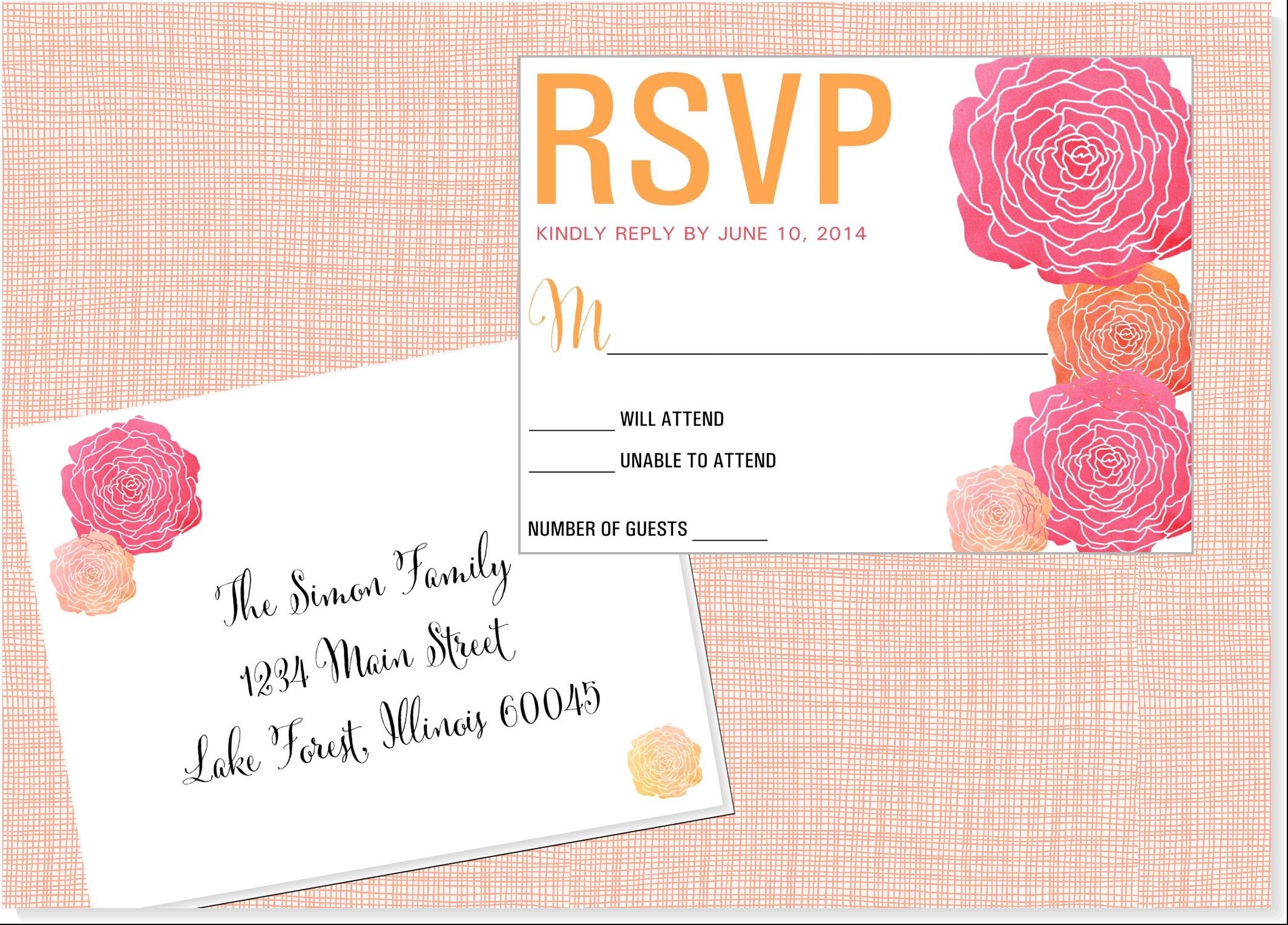 Water Color Flower wedding printable invitation suite Pink Orange Coral